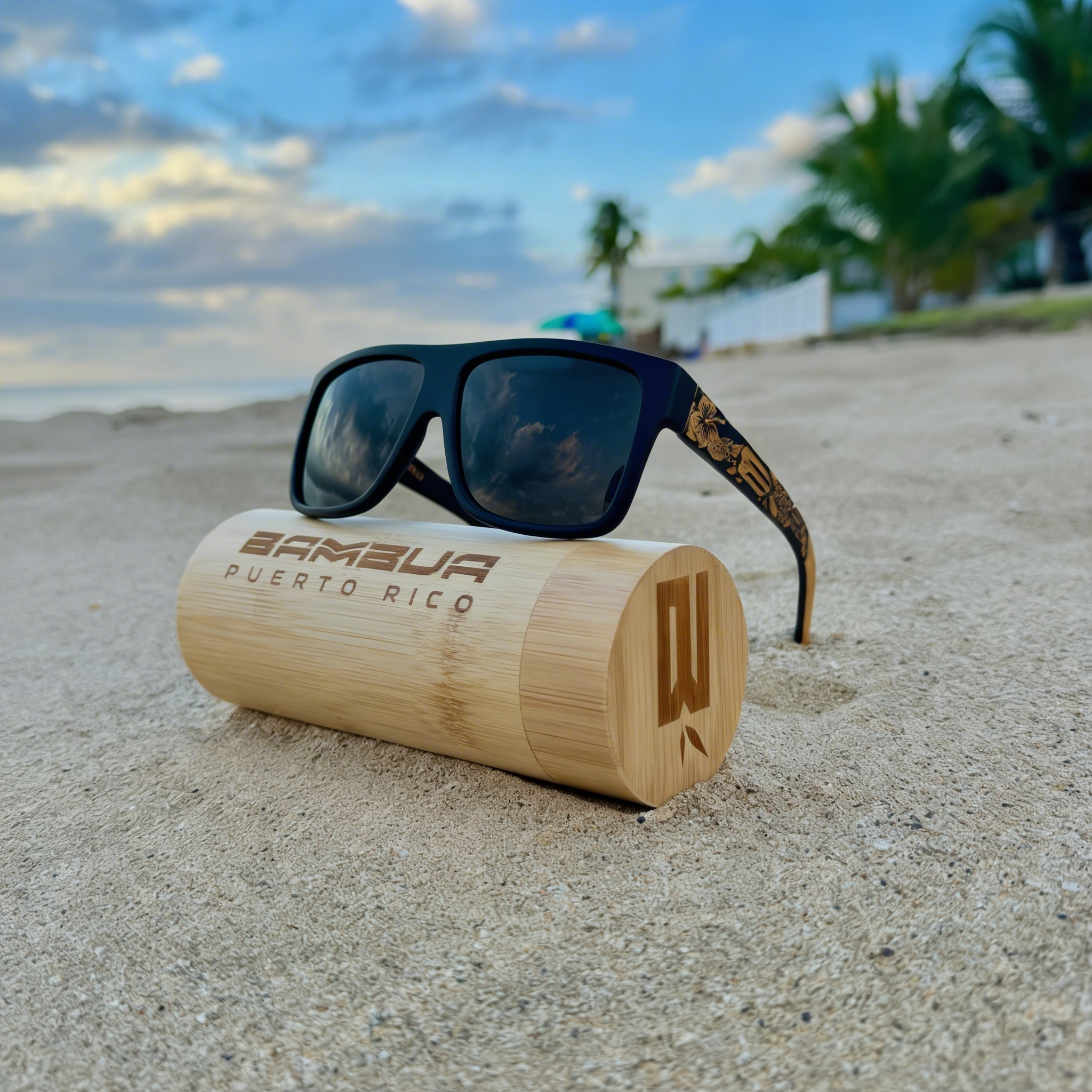 Su empaque unico protege tus gafas con una rÃgida forma cilindrica hecha con tiras de bambú.